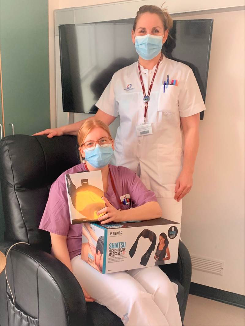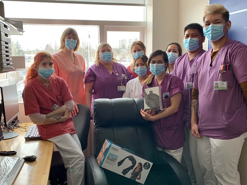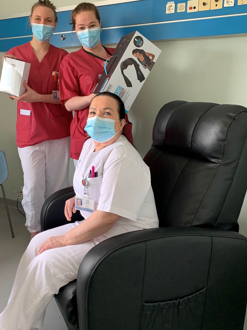Tíu legudeildir í Fossvogi fengu rafknúinn hægindastóll, hjóðeinangrandi heyrnatól af bestu gerð, nuddtæki og þyngingarteppi, allt hugsað til að gera stutta hvíld og slökun aðgengilega á vaktinni og taka orkublundi á næturvaktinni.